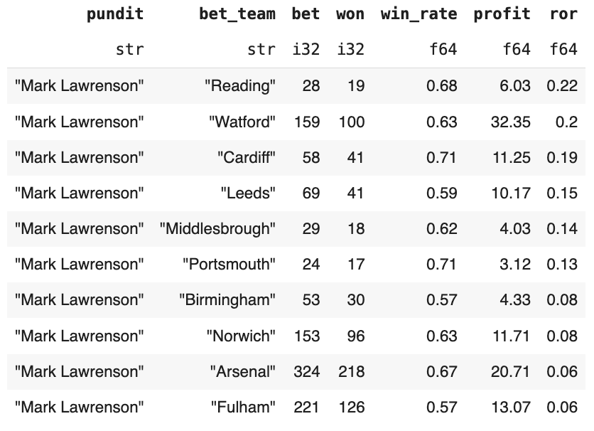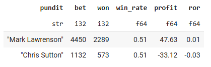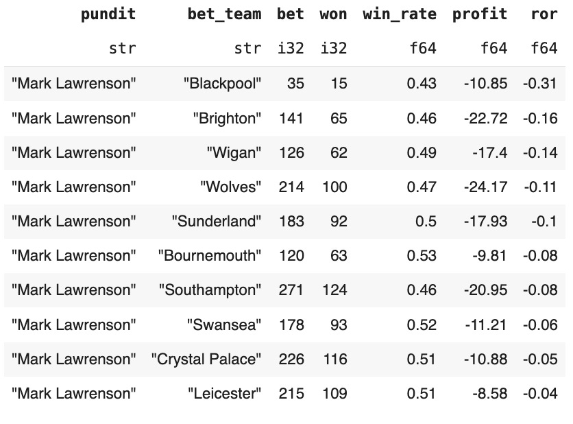 I’m not sure whether the cummulative net profit line chart is chronological. If yes, i’m surprised Lawrenson’s credibility recovered after the initial dip.