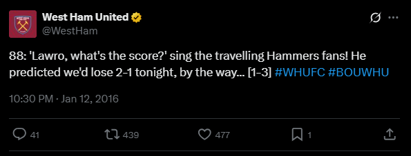 But predictions wise, I do it on a Thursday morning. There’s my league table on there and the real one, I don’t even look at them. I’ll just remember Leicester winning last weekend or whatever, work out who they’re playing against, and just guess.’