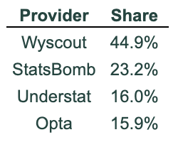 Understat isn’t really a “provider” in the formal sense, and I still have no idea where they source their raw data. So either they rely on Opta (somewhat), or they built a very similar model — which seems like the more plausible explanation. Either way, Understat remains a great free resource that’s reliable enough for most purposes.
